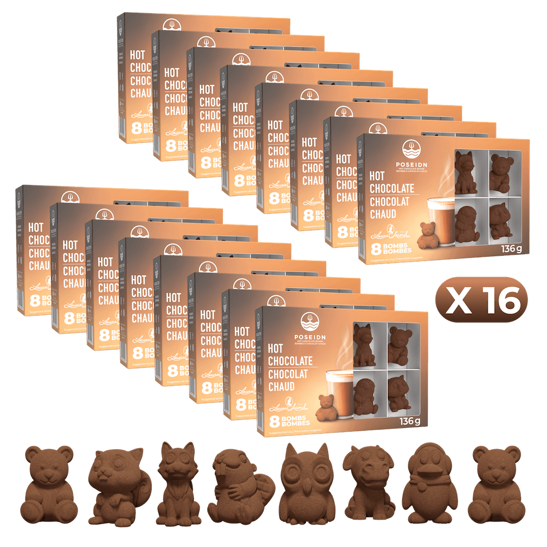 Il s'agit d'une caisse contenant 16 ensembles variés de bombes de chocolat chaud.