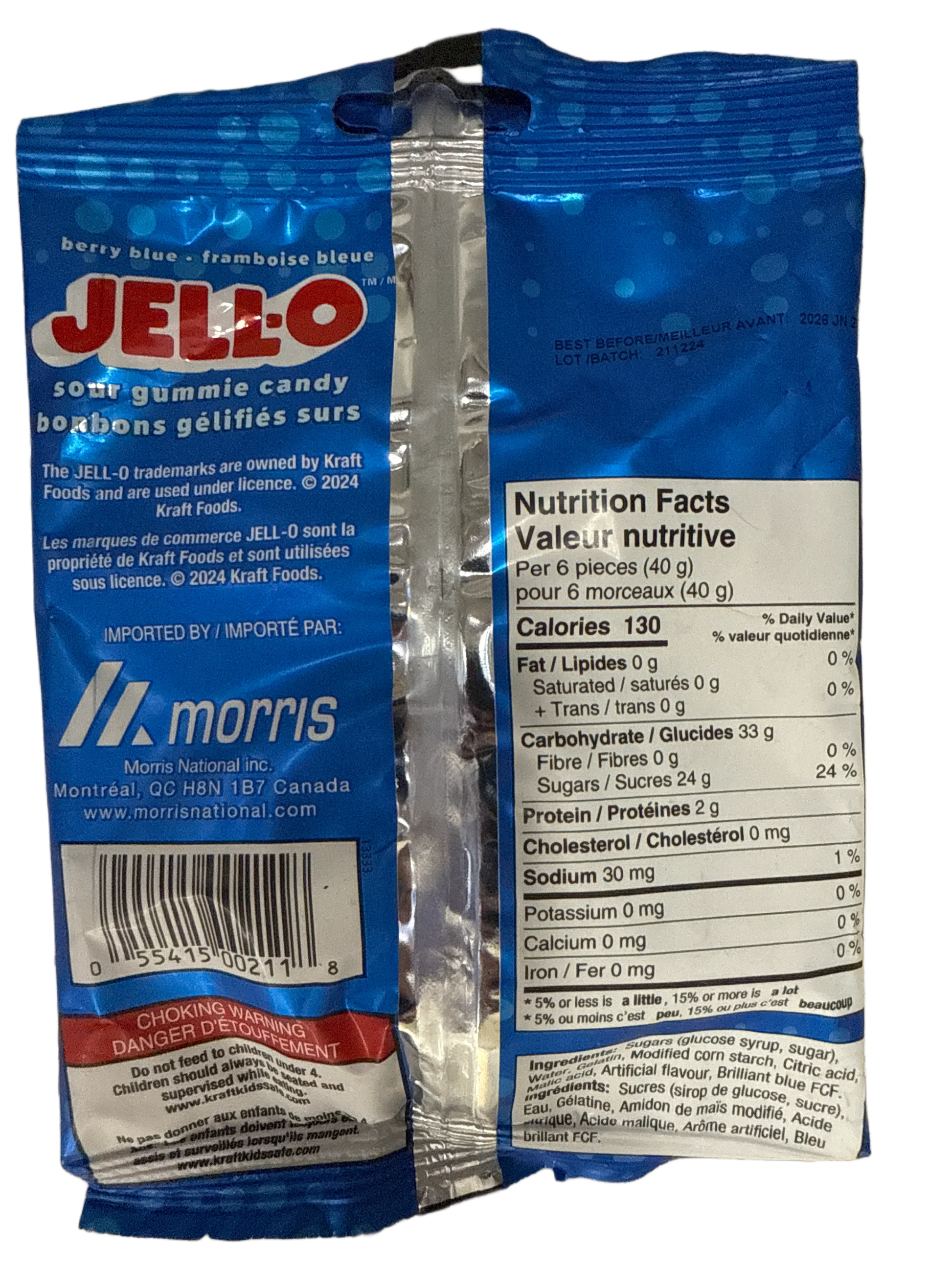 Bonbons gélifiés acidulés JELL-O Berry Blue 127 g - Édition canadienne
