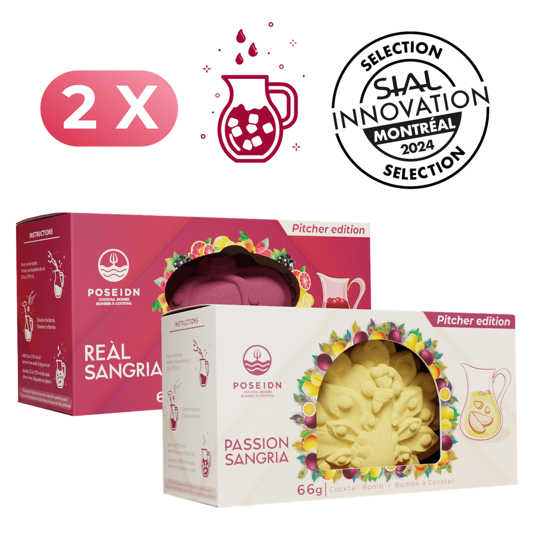 Quoi de mieux que de boire un verre de sangria ? Partager un pichet ! Découvrez nos 2 saveurs en duo avec notre dernière innovation : l’édition pichet de Cocktail Bomb. Un plus gros Cocktail Bomb suffit pour préparer 50 oz (6 à 8 portions). Préparer un délicieux pichet de Sangria Passion n’a jamais été aussi facile, approuvé par les mixologues ! Idéal à partager avec vos amis et votre famille lors de vos prochaines activités en plein air, pool parties, BBQ, pique-niques, et plus encore !